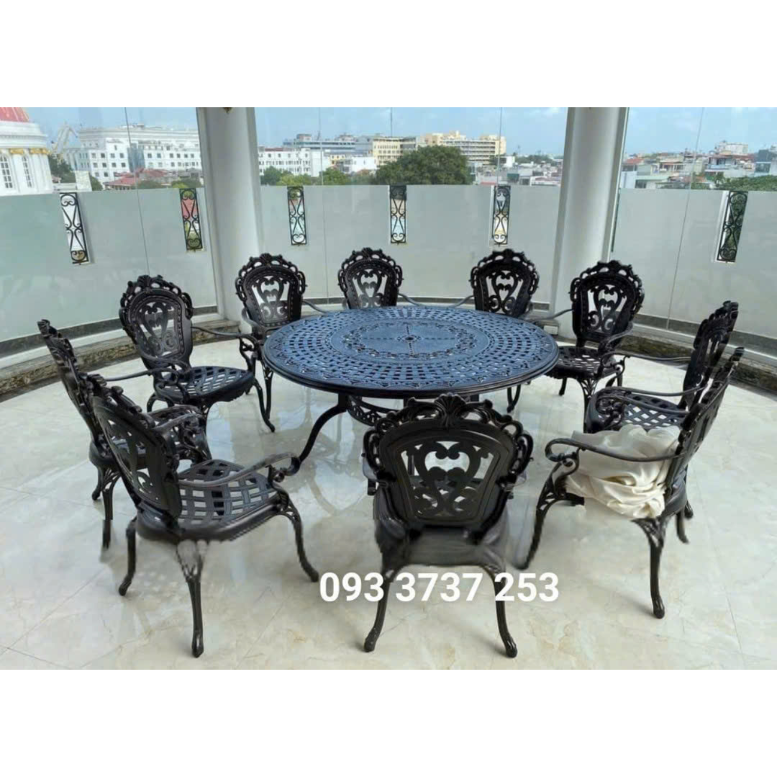 BỘ BÀN TRÒN 8 GHẾ NHÔM ĐÚC NGOÀI TRỜI