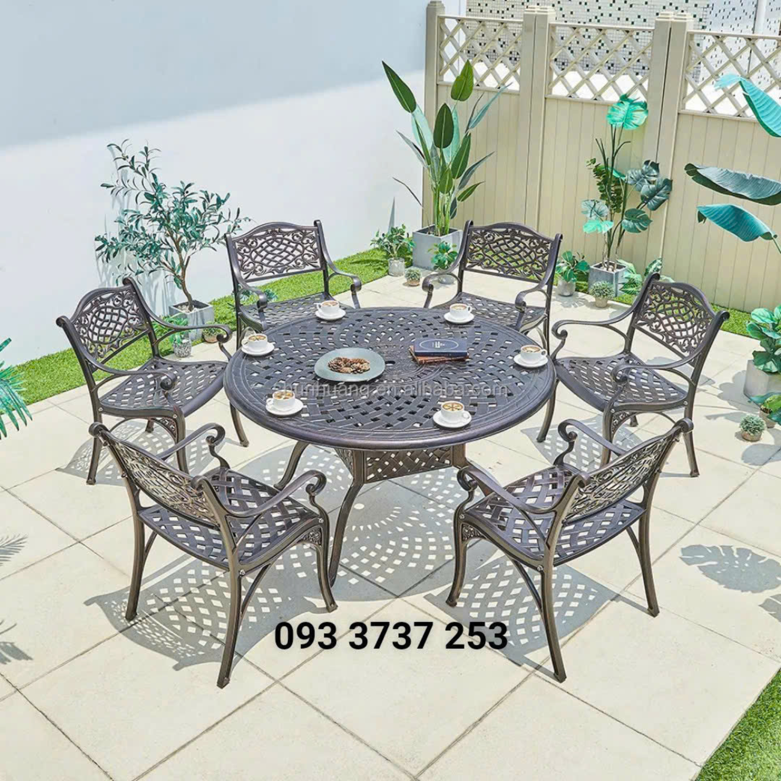 BÀN TRÒN 6 GHẾ NHÔM ĐÚC SANG TRỌNG