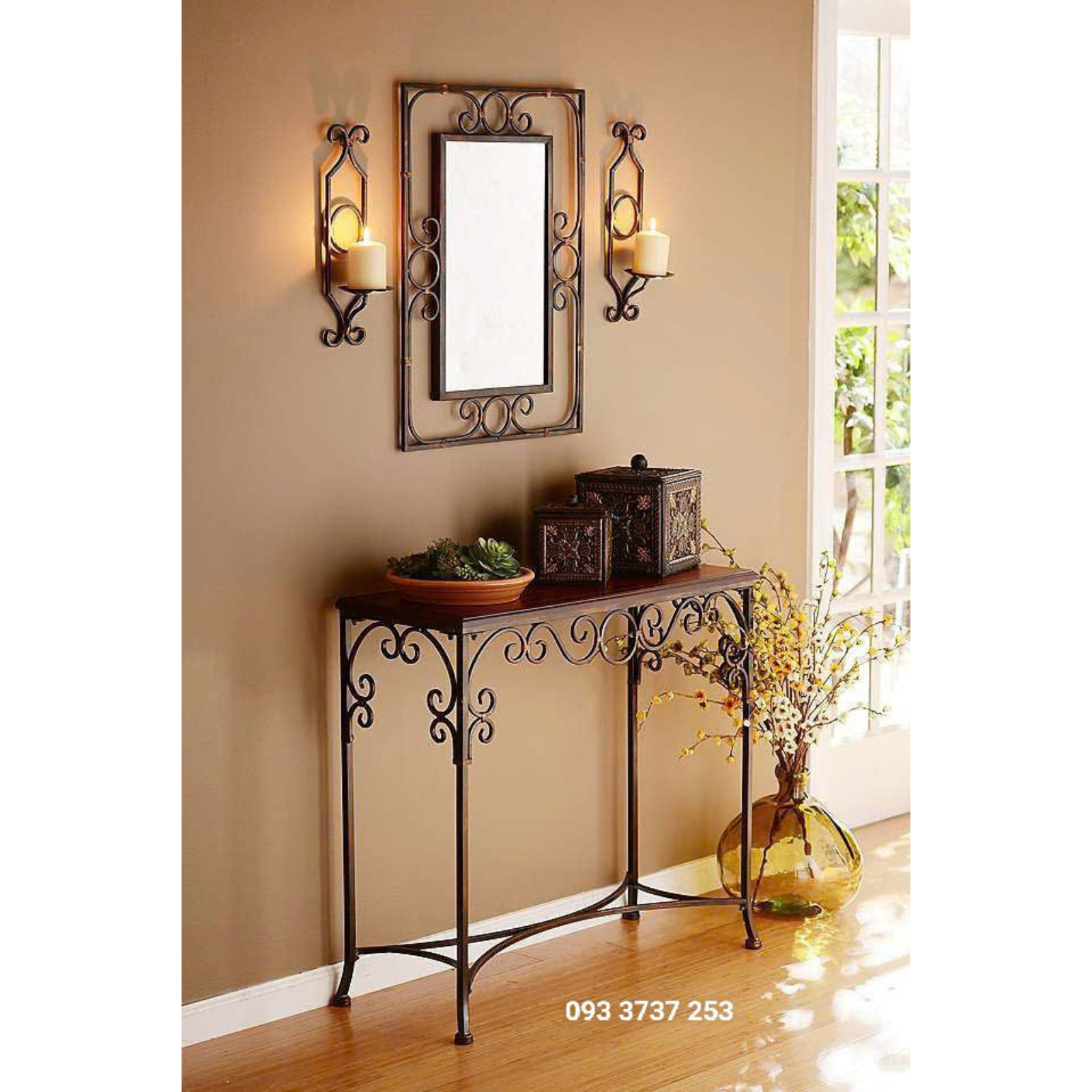 Bàn trang điểm sắt uốn mỹ thuật nổi bật nhờ những đường nét uốn lượn mềm mại, tinh xảo. Từng chi tiết được chế tác thủ công, tạo nên hoa văn uyển chuyển, mang đậm chất nghệ thuật. Chính sự khác biệt này khiến bàn không chỉ là món đồ nội thất mà còn như một tác phẩm nghệ thuật trong ngôi nhà.