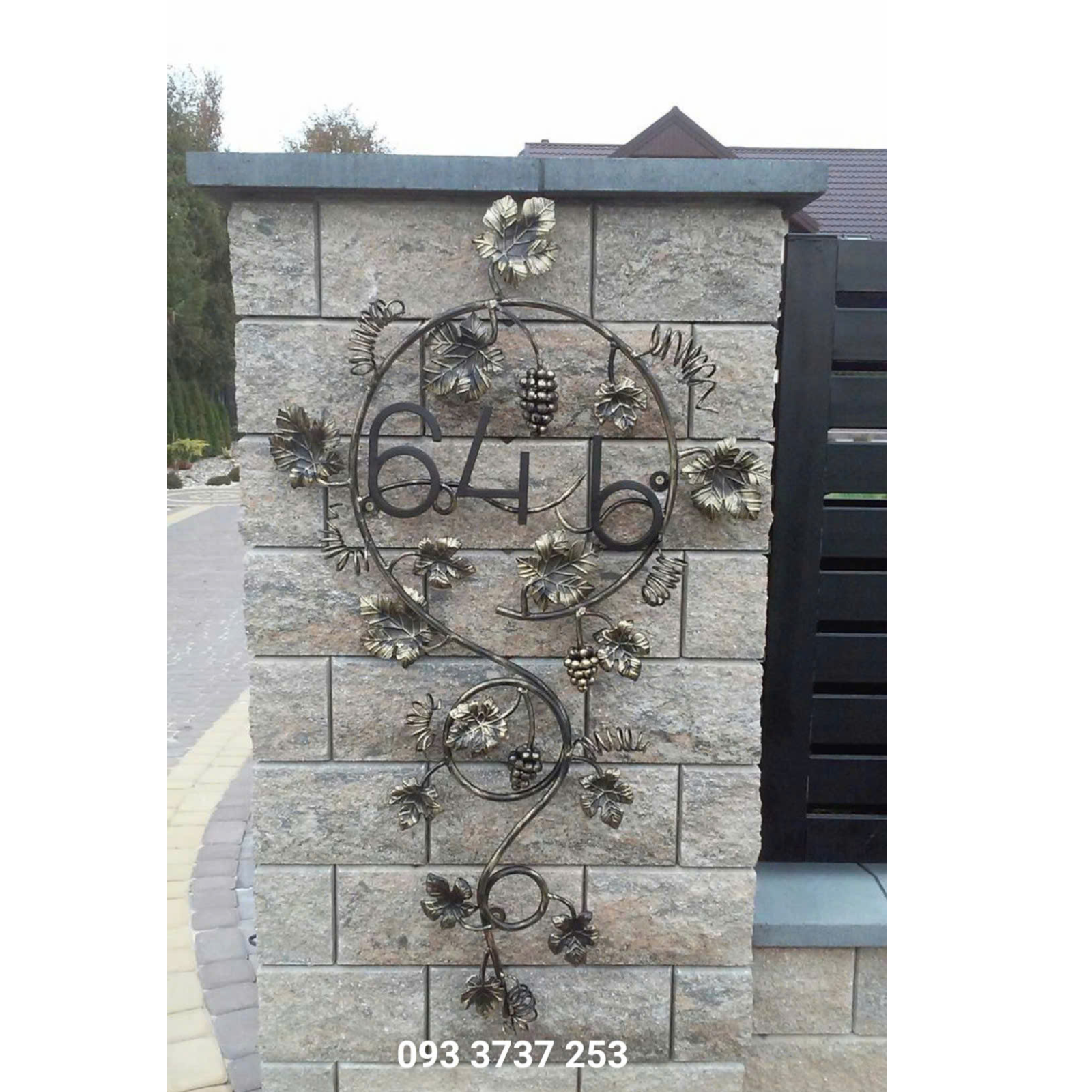 Các chi tiết dây nho được gia công tỉ mỉ với lá và quả nho cách điệu, mang đến cảm giác hài hòa giữa thiên nhiên và nghệ thuật. Mẫu biển này thường sơn màu giả cổ nhằm tăng thêm nét duyên dáng cho ngôi nhà. Biển số nhà sắt mỹ thuật họa tiết dây nho chính là lựa chọn lý tưởng để làm nổi bật không gian nhà bạn, đồng thời mang đến sự khác biệt và đẳng cấp