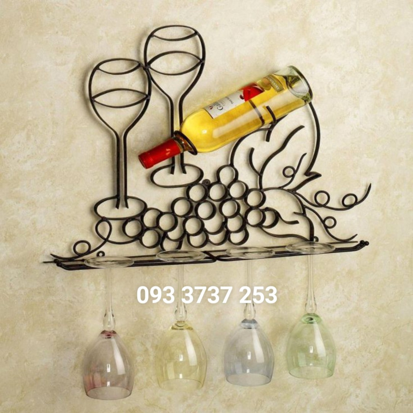 Giá đỡ rượu ốp tường sắt mỹ thuật KR - 006