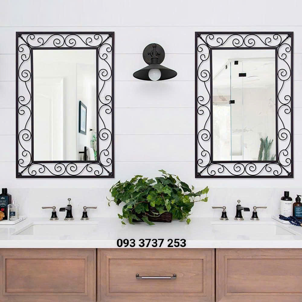 Khác với những mẫu gương thông thường, gương nhà tắm sắt uốn mang đến sự mềm mại qua từng đường cong uốn lượn. Khung gương được tạo hình hoa văn nhẹ nhàng, cổ điển dễ dàng phối hợp với các phong cách nội thất khác nhau.
