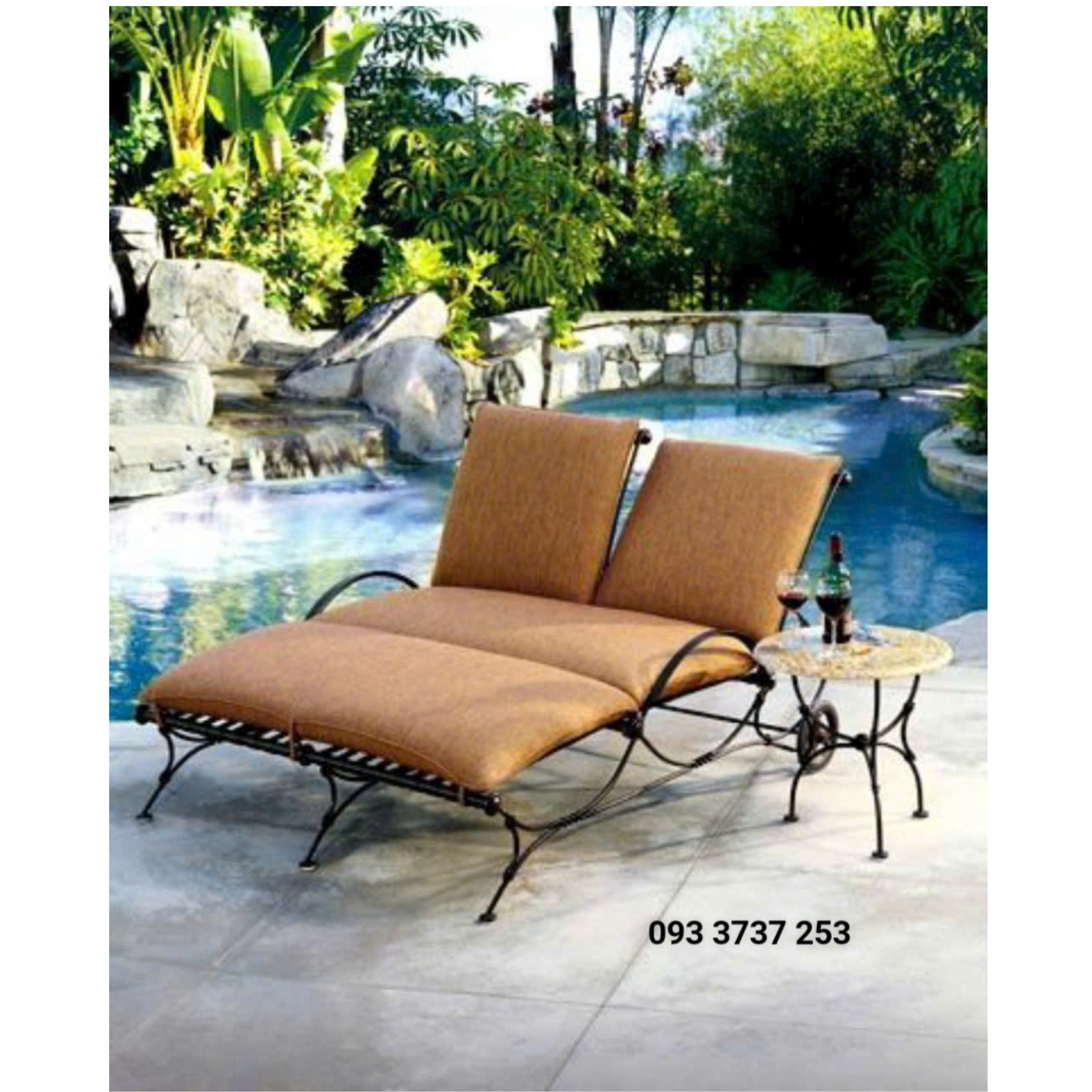 Ghế hồ bơi đôi được thiết kế rộng rãi với hai chỗ ngồi liền kề, đi kèm phần lưng tựa có thể điều chỉnh độ ngả phù hợp cho cả hai cùng thư giãn. Bên hông ghế còn có thêm phần tay vịn chung và bàn nhỏ để đặt ly nước, trái cây, hay những món ăn nhẹ – rất tiện lợi cho các cặp đôi yêu thích những buổi hẹn hò ngoài trời.