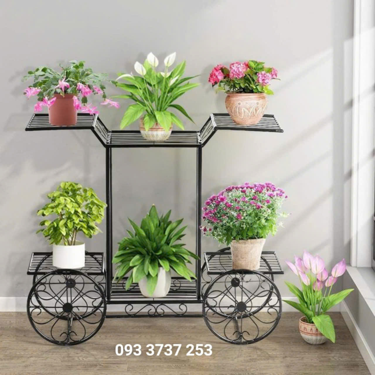 kệ hoa sắt mỹ thuật 6 tầng không chỉ làm đẹp cho không gian sống mà còn giúp bạn tận dụng diện tích một cách hiệu quả. Với thiết kế tối ưu bạn có thể sắp xếp nhiều chậu hoa và các vật dụng khác một cách gọn gàng. Mỗi tầng kệ đều được bố trí hợp lý để các cây cảnh có thể nhận đủ ánh sáng và không khí, giúp chúng phát triển tốt hơn.
