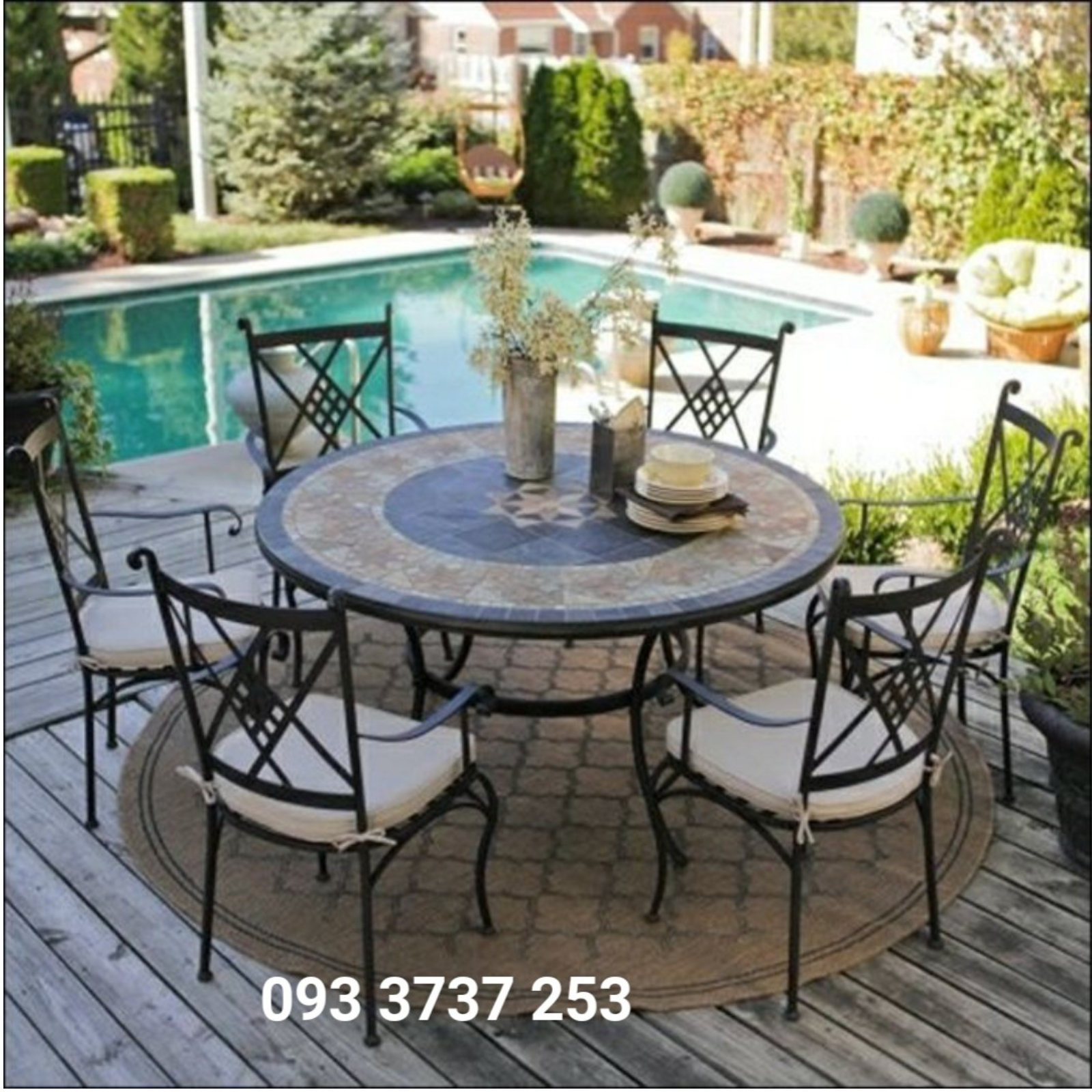BỘ BÀN ĂN NGOÀI TRỜI HOA VĂN MOSAIC THANH LỊCH