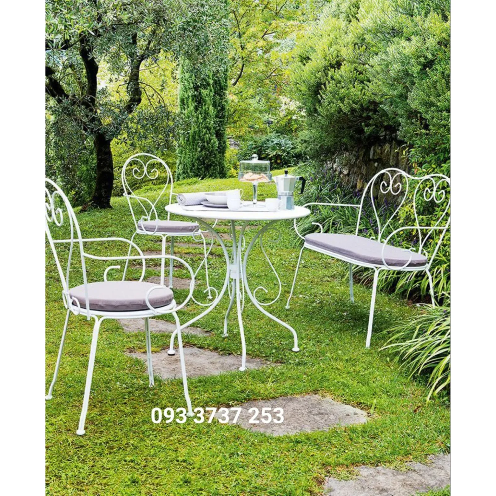 BỘ BÀN GHẾ NGOÀI TRỜI BẰNG SẮT DÁNG THANH LỊCH