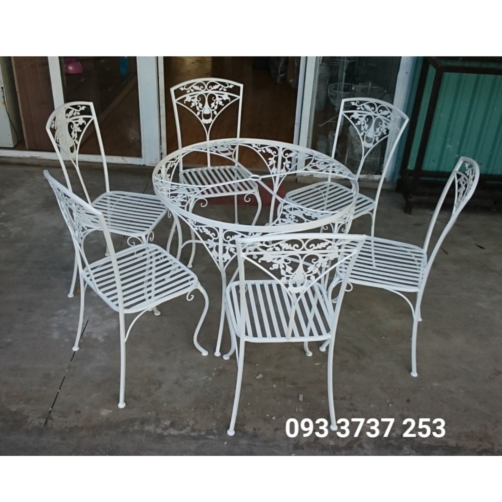 BỘ BÀN TRÒN 6 GHẾ SẮT CNC HOA VĂN ĐẸP