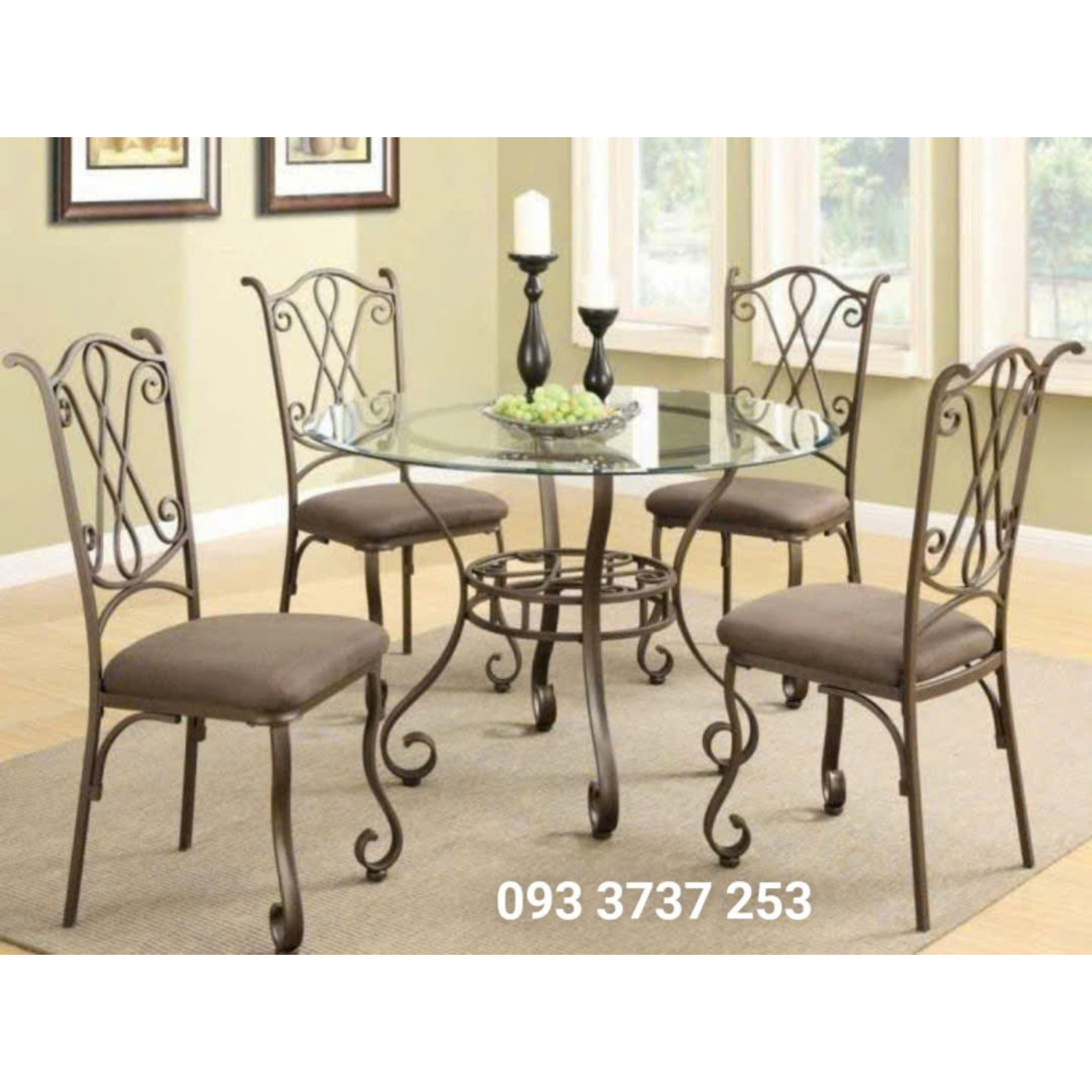 Chất liệu: sắt đặc uốn hoa văn, mặt bàn kính cường lực 10mm