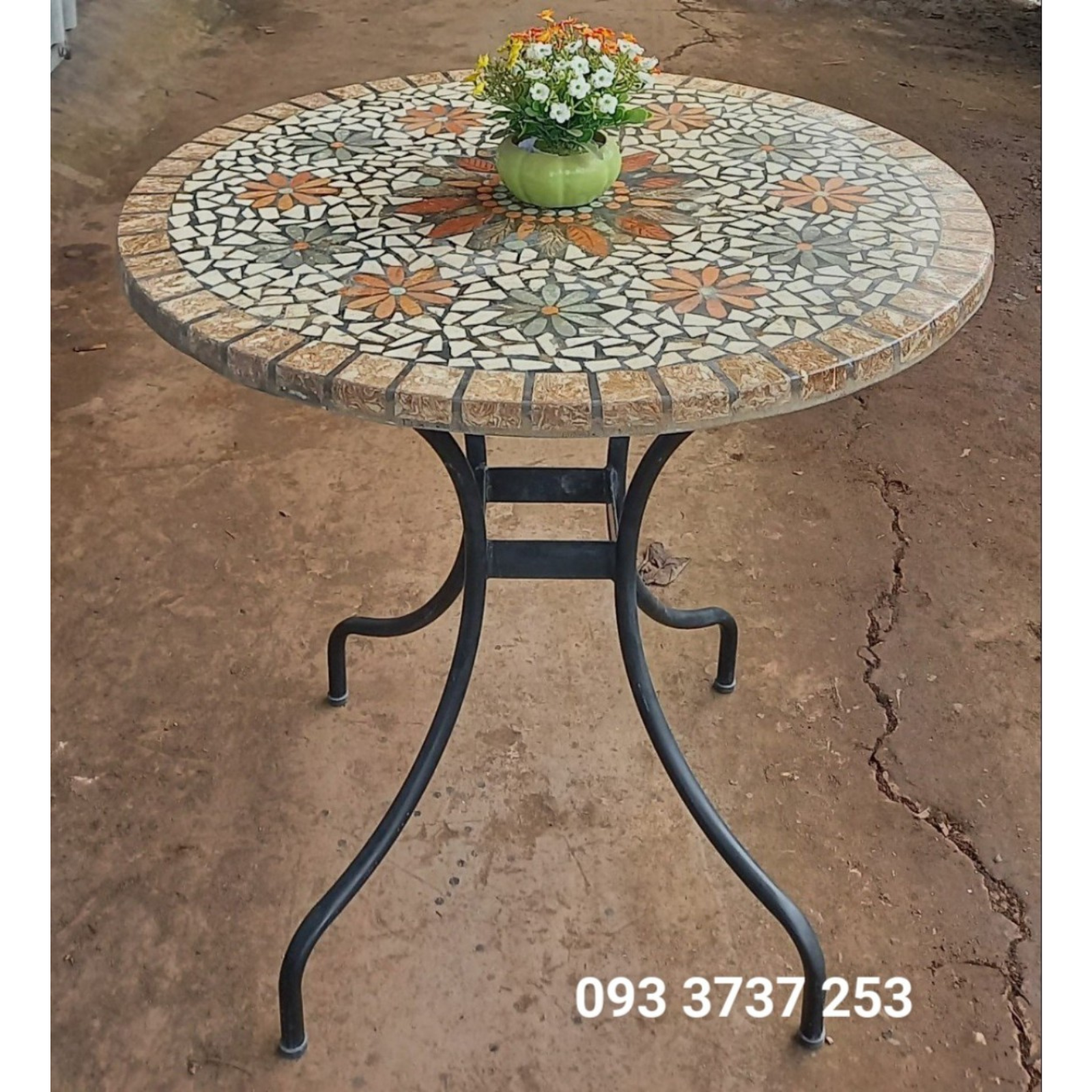 Chất liệu: sắt uốn hoa văn, mặt bàn Mosaic
