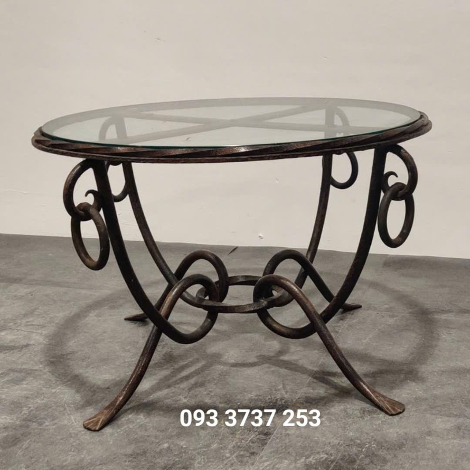 Chất liệu: sắt đặc uốn hoa văn, mặt bàn kính CL 10mm