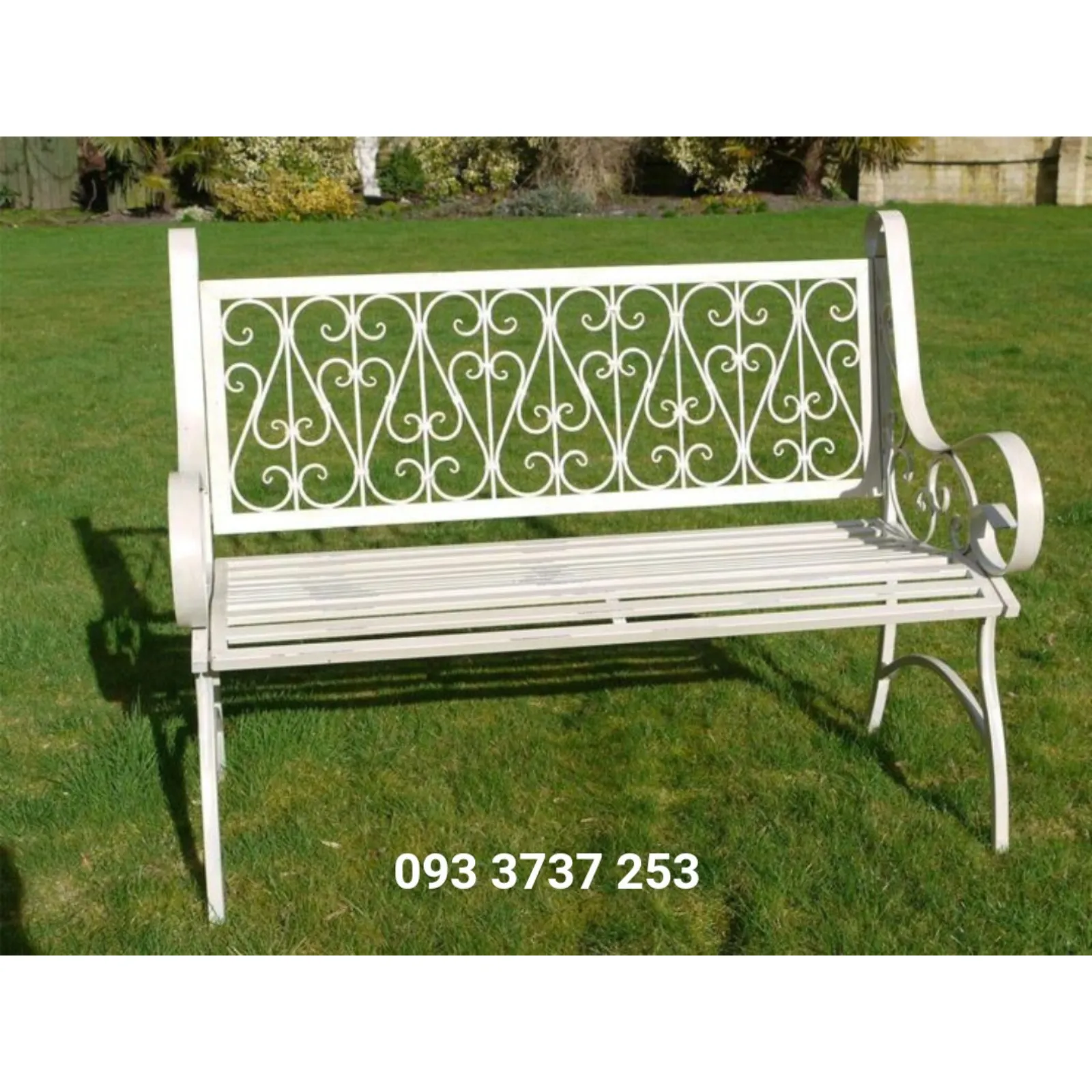 GHẾ BĂNG DÀI MÀU TRẮNG CỔ BẰNG SẮT MỸ THUẬT