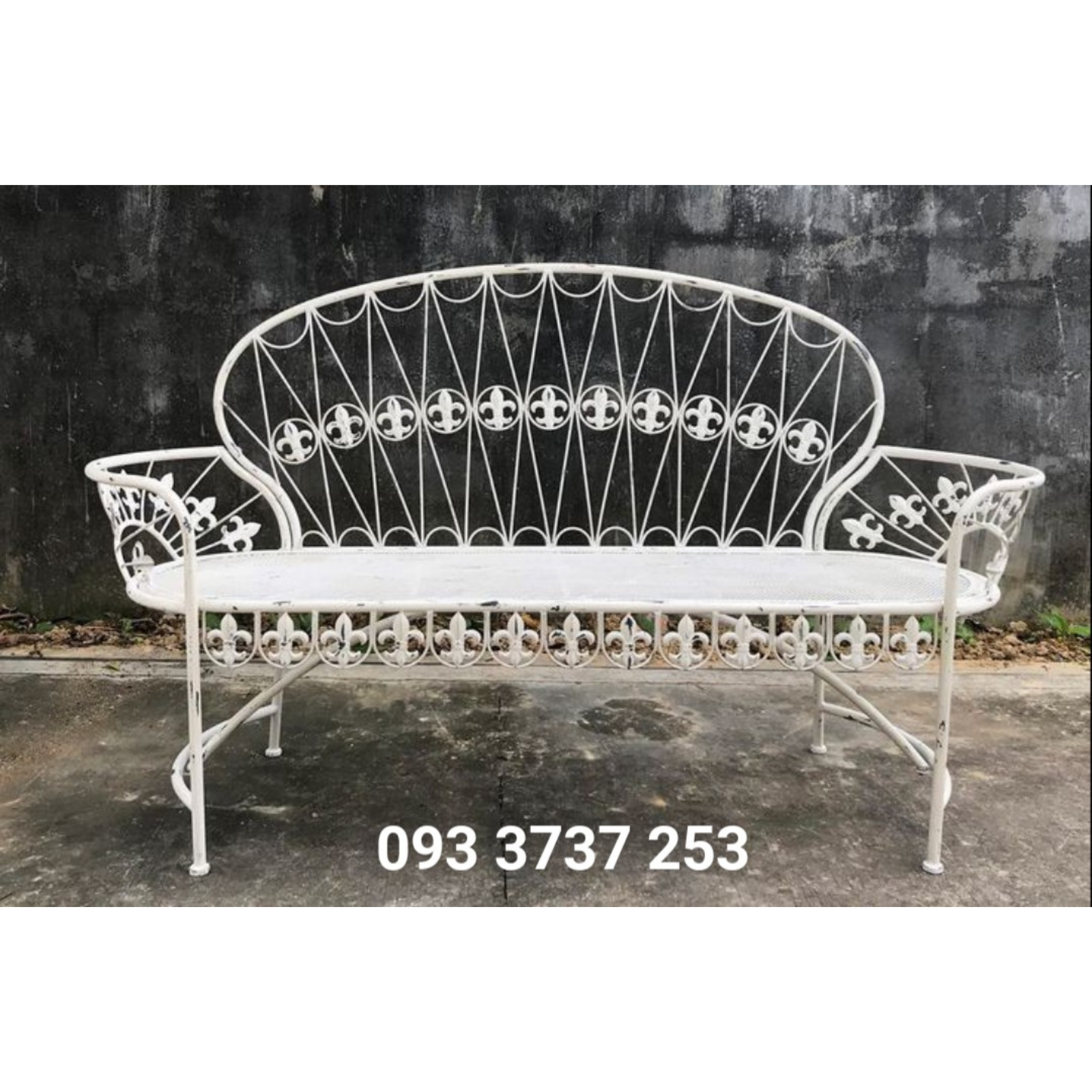 GHẾ BĂNG DÀI MÀU TRẮNG CỔ BẰNG SẮT MỸ THUẬT