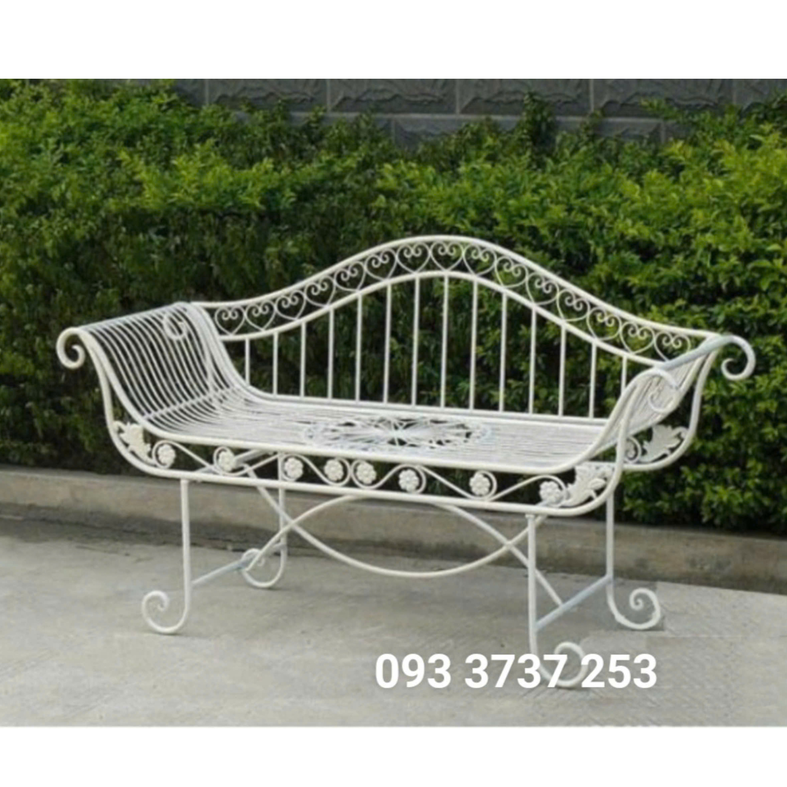 GHẾ BĂNG DÀI MÀU TRẮNG CỔ BẰNG SẮT MỸ THUẬT