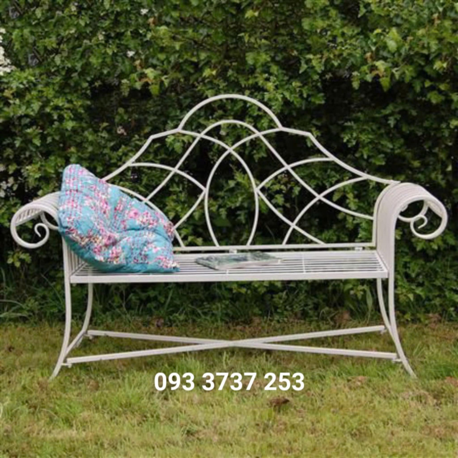 GHẾ BĂNG DÀI MÀU TRẮNG CỔ BẰNG SẮT MỸ THUẬT