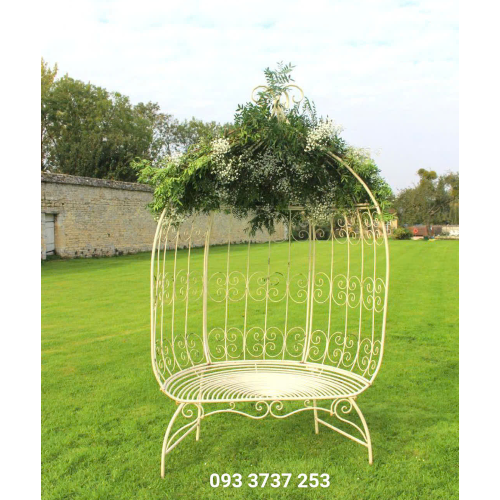 Ghế dài được làm từ sắt uốn mỹ thuật với những đường nét mềm mại, tinh xảo, mang lại cảm giác cổ điển, sang trọng. Khi kết hợp cùng vòm sắt phía trên – nơi dành riêng cho các loại hoa leo như: hồng, tigon, hay sử quân tử – tổng thể trở nên nhẹ nhàng, nên thơ như trong một khu vườn Châu Âu thu nhỏ.