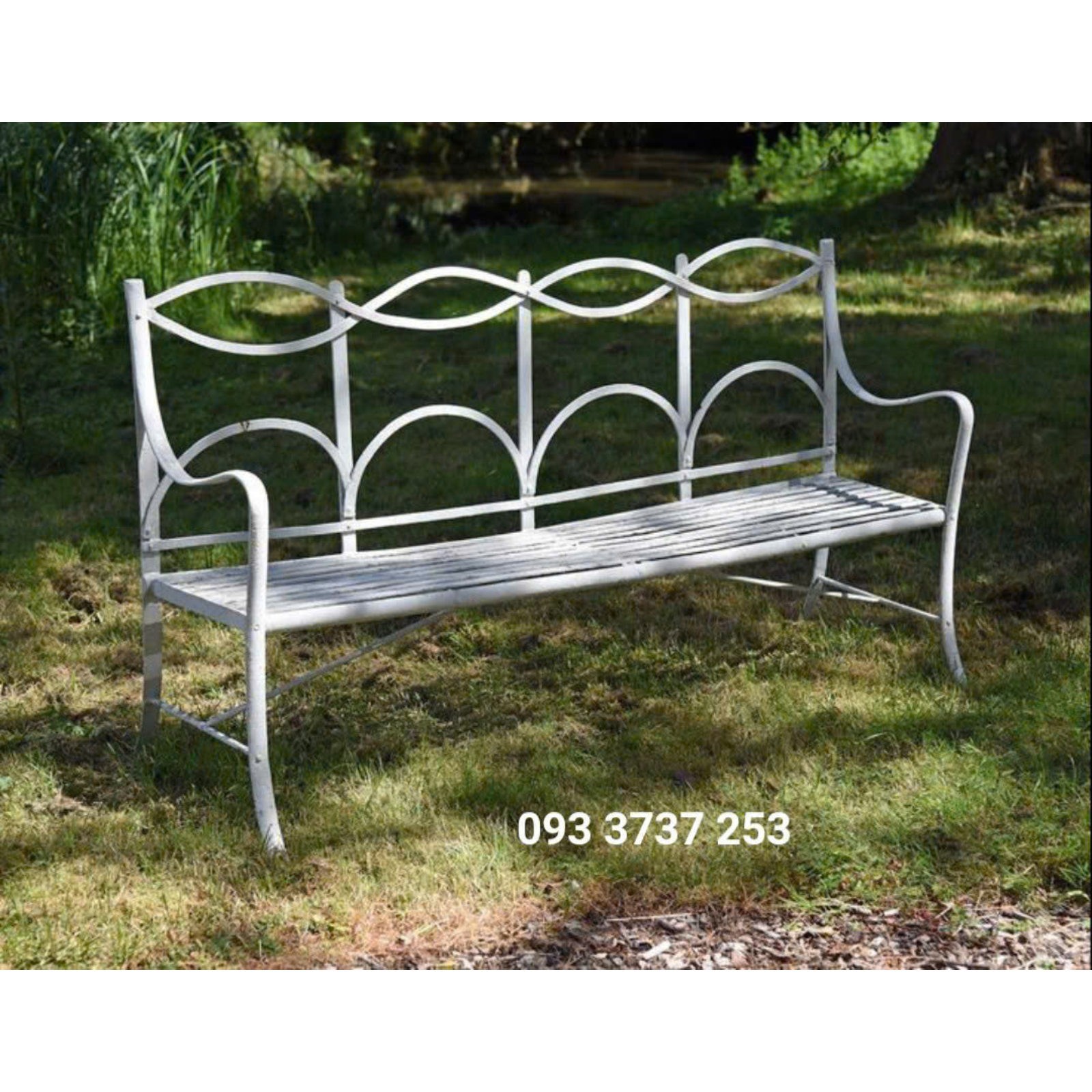 GHẾ BĂNG DÀI MÀU TRẮNG CỔ BẰNG SẮT MỸ THUẬT