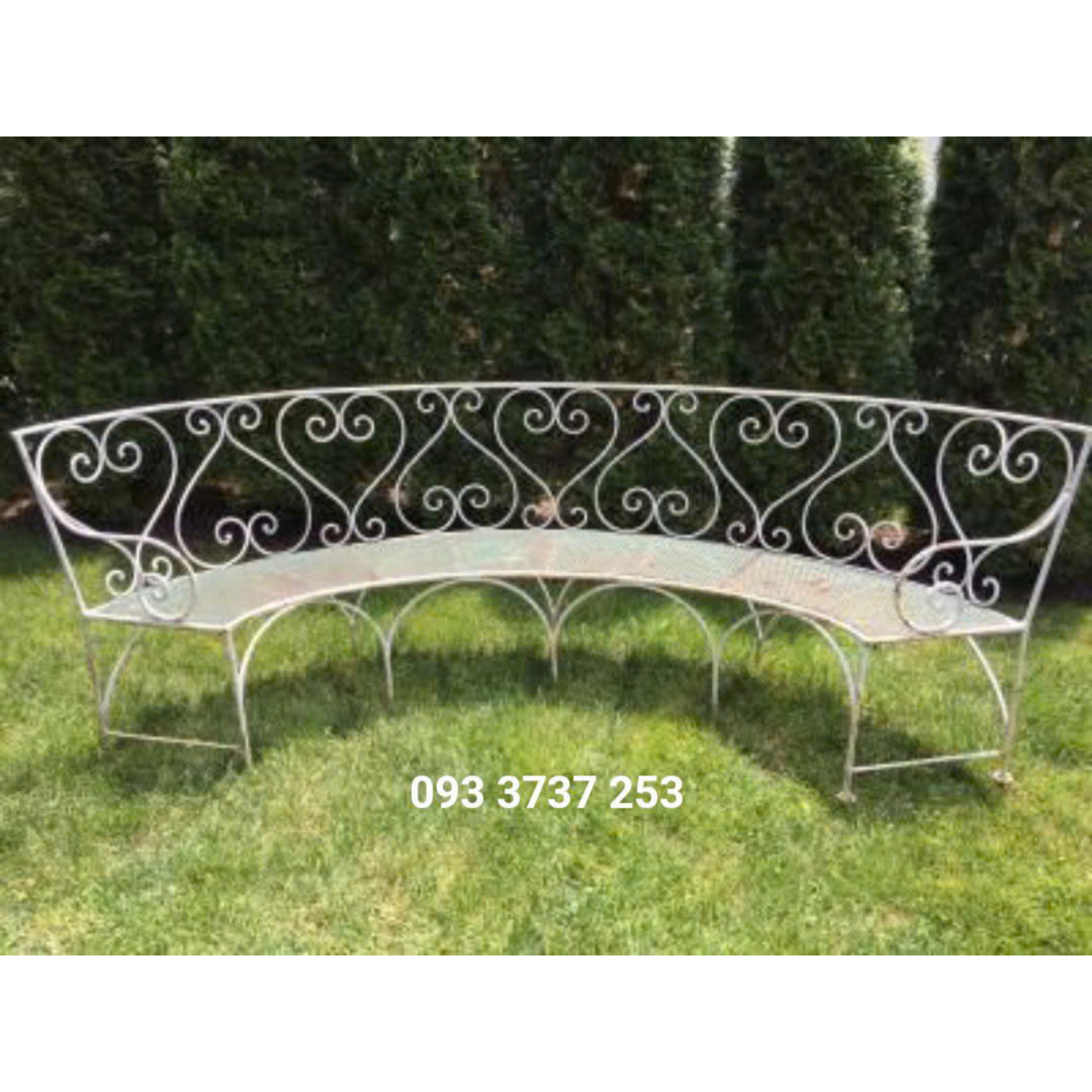 Tay vịn và lưng ghế băng được uốn cong mềm mại, kết hợp với các đường nét hoa văn sắt rèn thủ công, tạo nên một tổng thể nhẹ nhàng, thanh thoát nhưng vẫn đầy tính nghệ thuật. Dù đặt giữa vườn cây xanh mát hay bên hiên nhà, chiếc ghế vẫn nổi bật với vẻ đẹp cổ điển pha lẫn hiện đại, mang đến cảm giác gần gũi, thư thái.