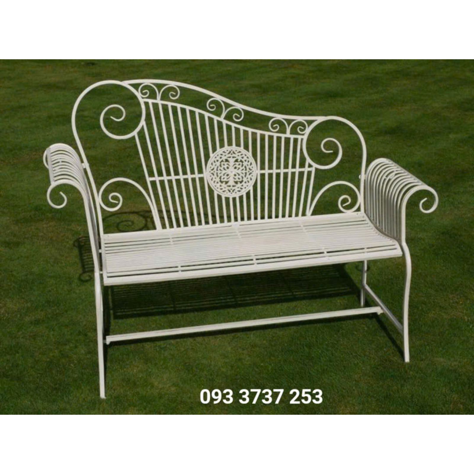 GHẾ BĂNG DÀI MÀU TRẮNG CỔ BẰNG SẮT MỸ THUẬT