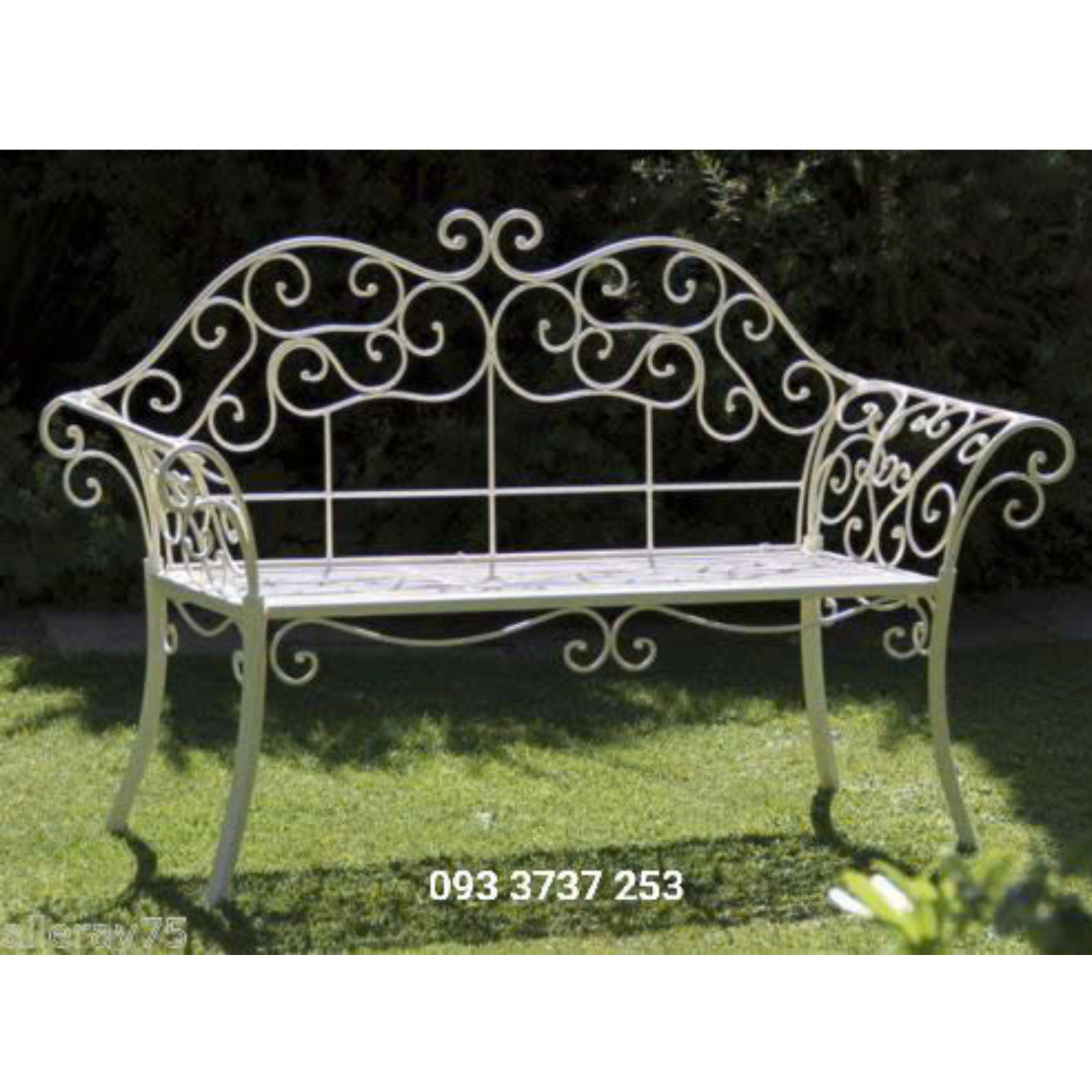GHẾ BĂNG DÀI MÀU TRẮNG CỔ BẰNG SẮT MỸ THUẬT