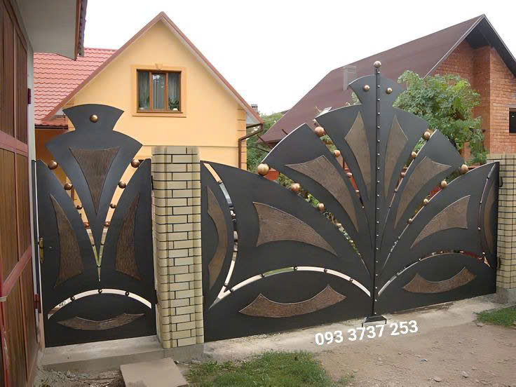 Cửa cổng sắt CNc họa tiết chiếc lá đẹp ấn tượng KH25 - CNC - 0011