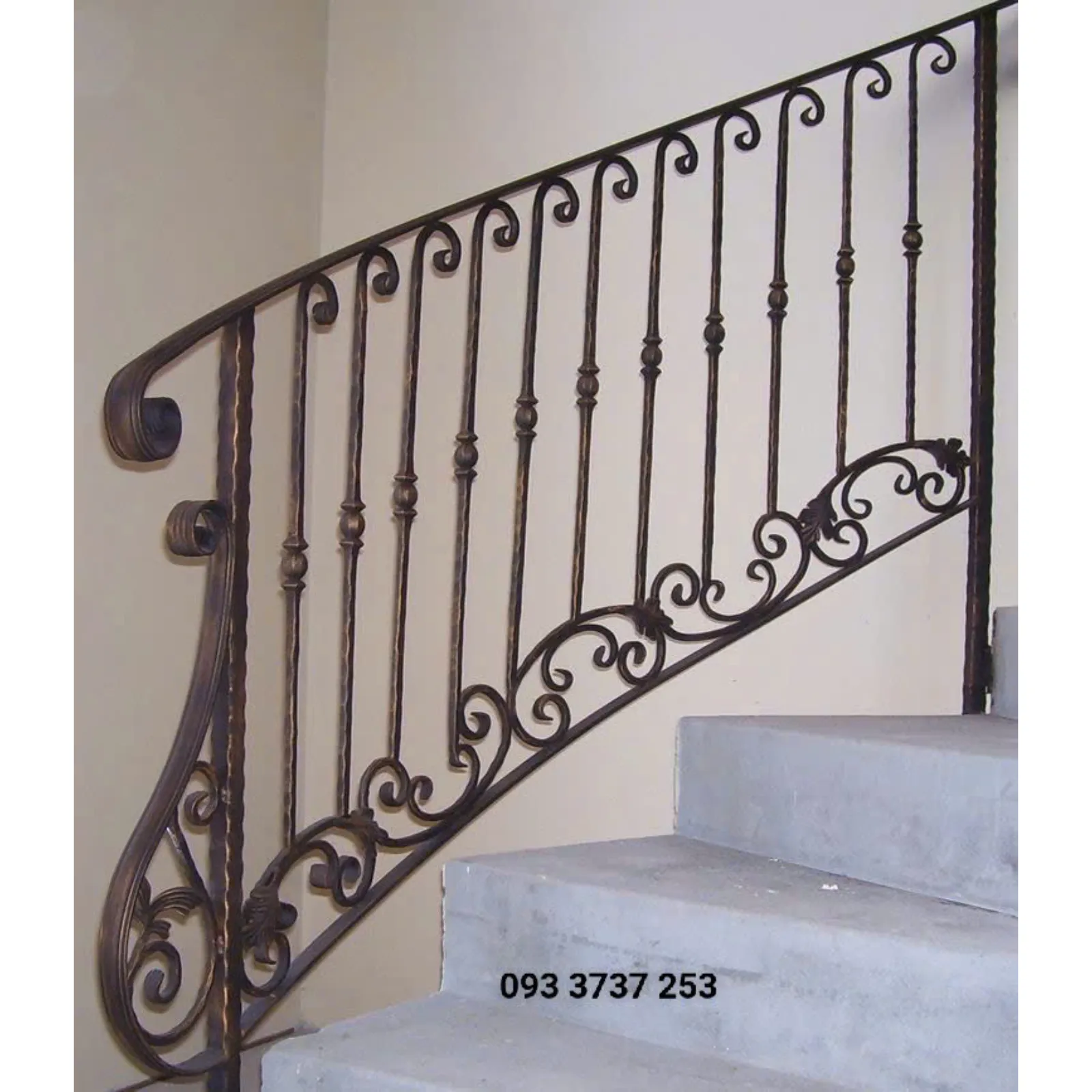 Chất liệu : sắt phi 14,12,8 đặc rèn đầu, viền la 20 x 8 (không kèm tay vịn gỗ) tay vịn la cán cạnh 50 x 8 + phụ kiện