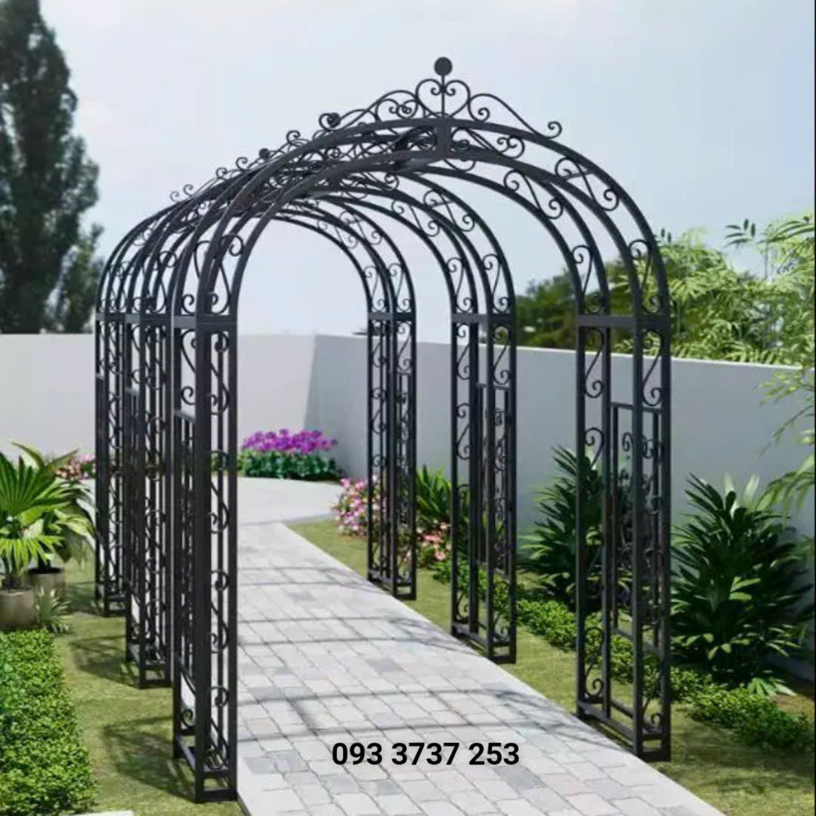 Vòm cổng được chế tác thủ công từ sắt đặc rèn mỹ thuật, tạo nên những đường cong uốn lượn đầy uyển chuyển. Các hoa văn trang trí hình chữ S… được phân bố khéo léo, mang đến cảm giác vừa thanh thoát, vừa lãng mạn như trong những khu vườn kiểu Âu cổ kính.
