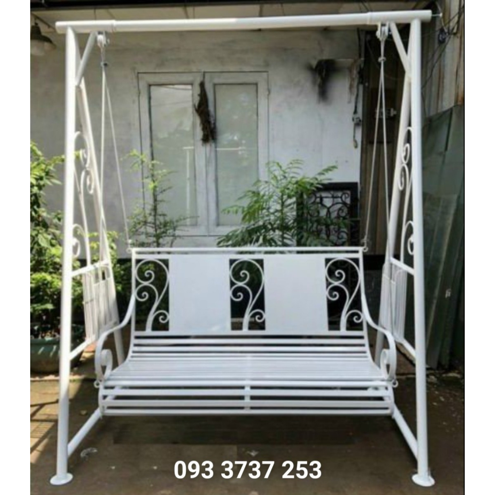 Xích đu sân vườn làm từ sắt đặc uốn hoa văn thủ công.