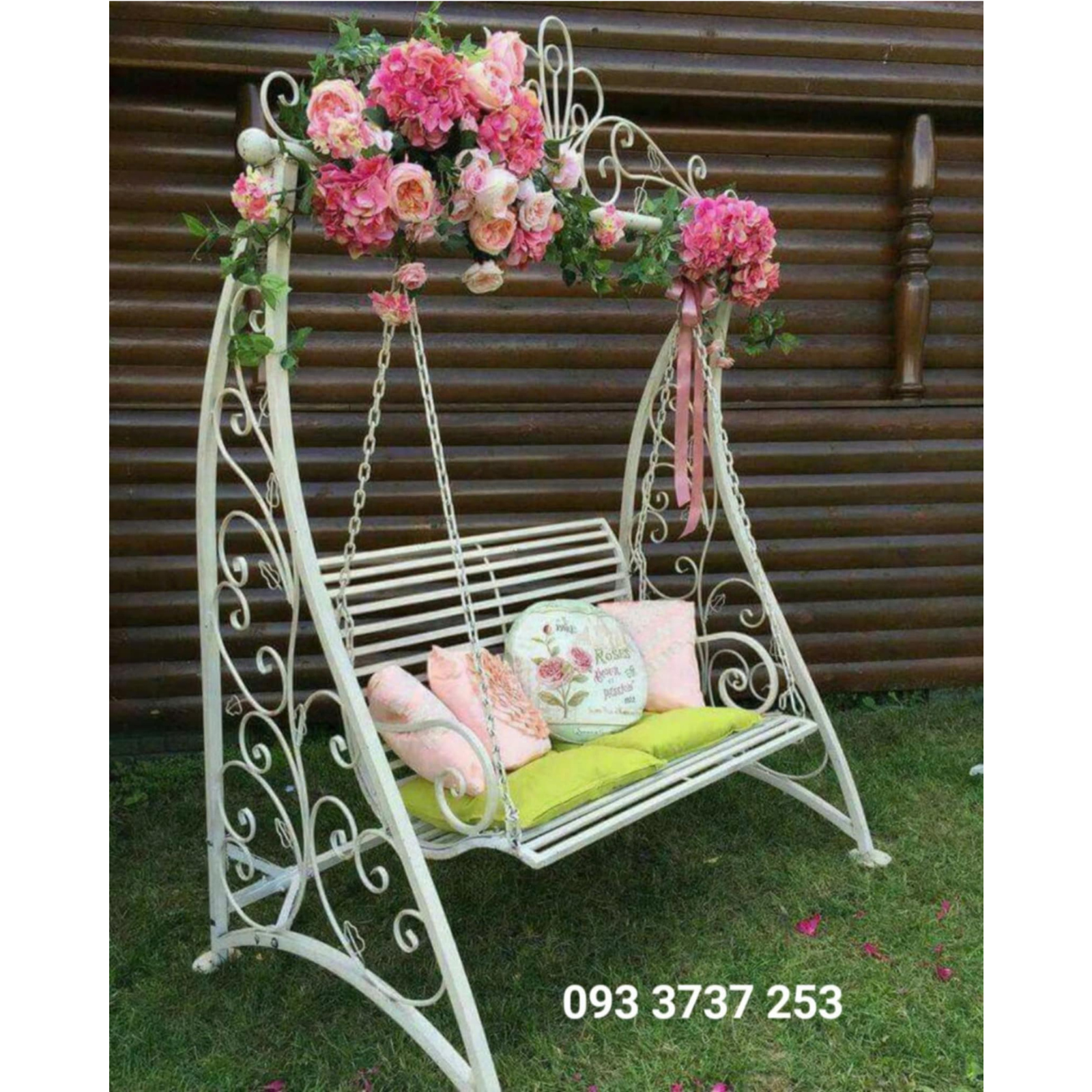 Xích đu sắt mỹ thuật trang trí hoa đẹp lãng mạn XĐ - 0046